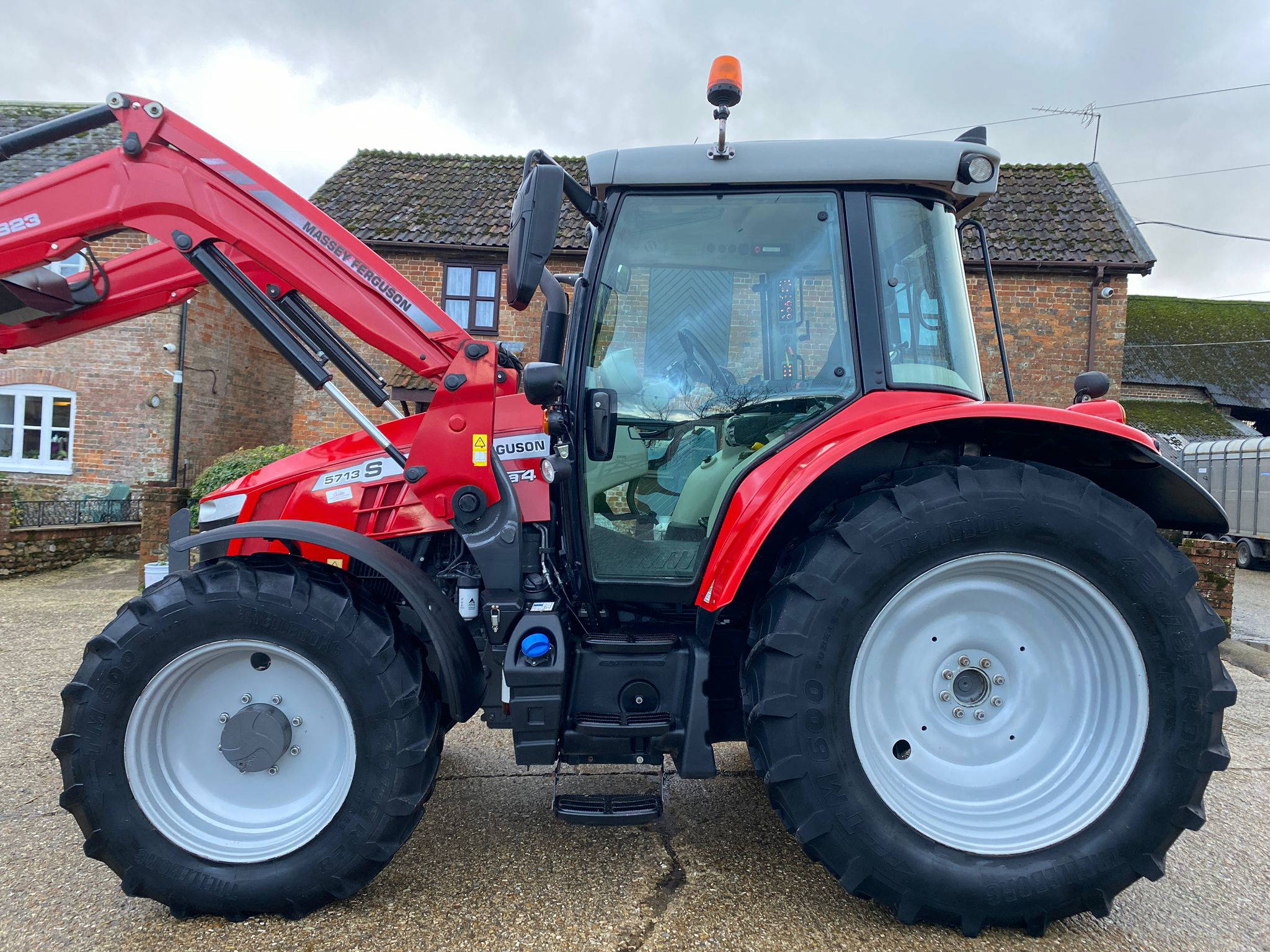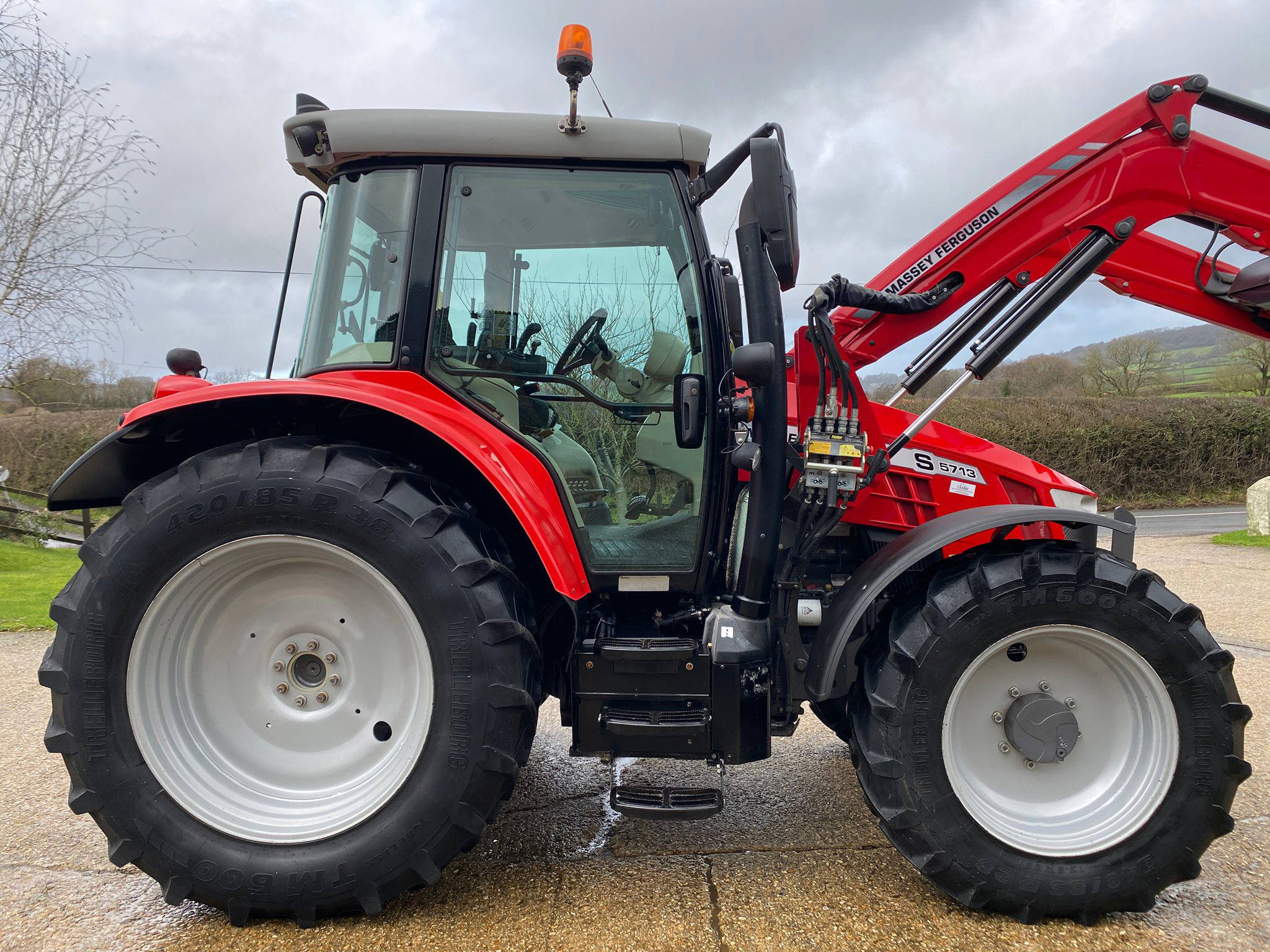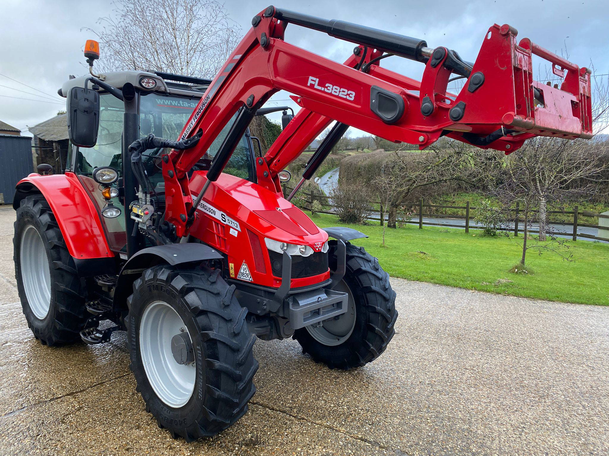 | Dyna-4/40kmh, Cab suspension, Air brakes, 4 x DA Spool valves inc. joystick, Push out hitch, Twin hyd pump, 540/540E/1000 PTO, Visio roof, Air con, Air/heated seat, Buddy seat, Full lighting package, High top headlights, Pivoting fenders, Tyres Rr. 420/85/R38 (60%) Tyres Fr. 340/85/R28 (50%) C/W MF FL.3823 Loader, Euro/combi headstock, Soft-ride, Quick dock, Self-levelling, 3rd service. Very smart low houred Tractor, Not seen muck or slurry! Click link for Walkaround video… https://youtu.be/lT2ZKY-BRUU | |